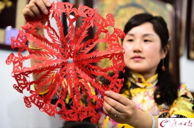 千件大師作品亮相廣州 2017年3月1日,第52屆全國工藝品交易會開幕式中國進出口商品交易會展館舉行。圖為:佛山剪紙。廣報全媒體記者王燕 攝 曾衛(wèi)康文
