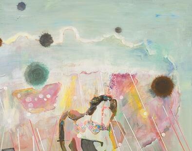 陸霄虹,現(xiàn)為南京藝術(shù)學(xué)院人文學(xué)院副教授、藝術(shù)管理系主任。出生于江蘇無錫的她長期浸染在江南深厚的文化積累中,在連接傳統(tǒng)與現(xiàn)代的道路上逐漸有了自己的藝術(shù)風(fēng)格。她的作品天然有一種江南氣候的水潤與透明感,輕薄的色彩、大膽的線條、點線面的結(jié)合形成了一種奇幻的戲劇張力與浪漫情調(diào)。在似與不似之間、在寫實和抽象之間,那條界限始終不那么明晰,具有分寸感。