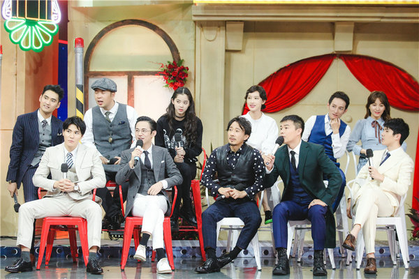 本期《快樂大本營(yíng)》迎來了《遠(yuǎn)大前程》劇組,陳思誠(chéng)、劉昊然、袁弘、張儷、陳昊等眾主創(chuàng)以具有年代質(zhì)感的造型悉數(shù)亮相,頗具上海灘韻味。節(jié)目以上海灘商界爭(zhēng)霸開場(chǎng),年代韻味十足,使觀眾大飽眼福?!哆h(yuǎn)大前程》劇組盡顯歡脫幽默,跟隨舞蹈老師現(xiàn)場(chǎng)學(xué)習(xí)國(guó)標(biāo)舞與五禽戲,青澀的動(dòng)作笑點(diǎn)連連,劉昊然成舞蹈擔(dān)當(dāng),幽默滿分引得無數(shù)網(wǎng)友熱議。陳思誠(chéng)更在現(xiàn)場(chǎng)即興獻(xiàn)唱高難度歌曲《我的太陽(yáng)》,與樂隊(duì)歌手飆起高音,贏得現(xiàn)場(chǎng)觀眾熱烈掌聲,氣氛達(dá)到小高潮。