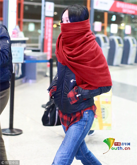 周迅演繹紅色圍巾的另類戴法 大步流星氣場滿分