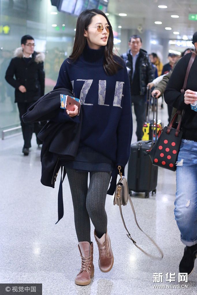 李沁高領(lǐng)毛衣 戴茶色墨鏡溫暖時尚