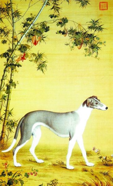 自宋代始花鳥畫獲得空前發(fā)展,皇家畫院極盛,追求精工寫實,動物畫這時得以獨立出來,單獨的犬畫開始出現(xiàn),現(xiàn)藏于北京故宮的宋李迪《獵犬圖》即是一幅不可多得的作品。他畫的《獵犬圖》造型比例精確,明暗層次清晰,立體感極強,犬的神態(tài)與動態(tài)尤其傳神,將獵犬盯視前方漫步而行的感覺刻畫得入木三分,堪稱形神俱佳之作??梢钥闯霎嫾也粌H具有高超的繪畫表現(xiàn)技巧,對狗的生活習性也有很深的了解,該作品體現(xiàn)了宋代畫家的非凡寫實功力與水平。“南宋四家”之一的劉松年曾畫過一幅風俗畫《補納圖》,畫中一老僧正在專注穿針引線補綴,床榻前一小狗席地而臥,似仰頭目視主人,小狗的刻畫堪稱神來之筆,寥寥幾筆勾勒,狗便活脫而出。