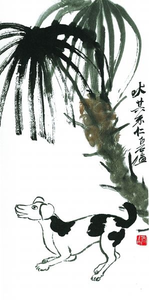 隨著上世紀九十年代國內(nèi)寵物熱的興起,狗越來越多地進入大眾的日常生活,頻頻成為當代畫家的表現(xiàn)對象。當代大家黃永玉先生的水墨畫,具有諷刺與幽默的色彩,他畫的狗系列畫作,令人忍俊不禁。著名畫家史國良的西藏風情畫中,我們也經(jīng)常能看到狗的身影,如他畫的《八角街上》,畫中靜臥一角的黑狗使整個畫面平添了許多生活氣息。古今畫狗的名家名作還有很多,實難一一列舉。狗的忠誠、溫順是人類的最愛,正緣于狗與人類的這種特殊關(guān)系,狗才成為畫家們百畫不厭的題材。