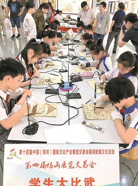 第四屆烙畫展覽交易會組委會負(fù)責(zé)人介紹,過去一年,光明烙畫在光明新區(qū)管委會的大力支持和社會各界的幫助下,已走進部分學(xué)校授課,受到學(xué)生們的歡迎。在第八屆中國國際新聞短片節(jié)中,烙畫得到了國際友人的了解、認(rèn)可,更得到他們的喜歡和點贊。今年4月6日,光明烙畫也走進了北京大學(xué)校園,得到師生們的一致好評。為了辦好今年的展交會,組委會于2018年1月份就開始籌備、宣傳、征稿,來自全國20多省市的120余名烙畫藝術(shù)家參加,作品有300余幅。參展作品題材豐富多樣,有人物畫、山水畫、動物畫、靜物畫、歷史畫等,其中山水畫中以描繪祖國大好河山的居多。同時,本屆展交會分兩大展示區(qū),分別是烙畫基地展示區(qū)和光明新區(qū)文化館展示區(qū),其中烙畫基地展區(qū)內(nèi)又分為九個區(qū)域。此次活動安排了烙畫藝術(shù)家畫光明,童心的世界才藝表演,烙畫大比武,特邀國家級大師走進光明等特色活動,讓每位參觀者體驗具有時代藝術(shù)特色的烙畫盛宴。