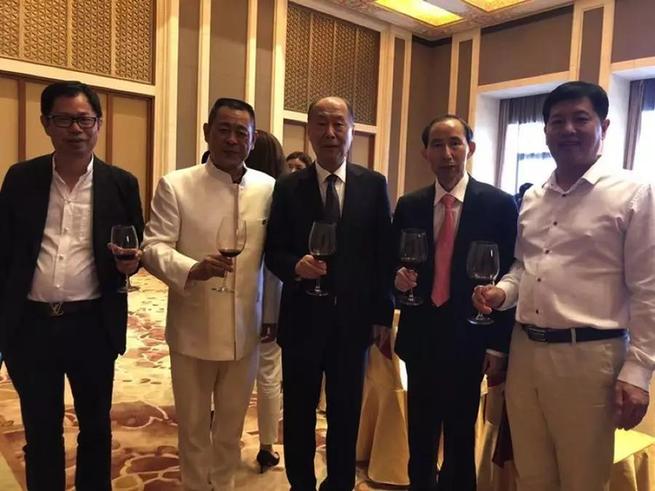 天基權(quán)董事長(zhǎng)/總裁釋延豹與香港影視紅星葉璇、中國影星王寶強(qiáng)合影
