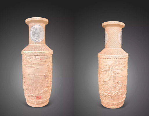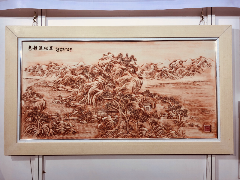 這是曹愛勤首次參加深圳文博會(huì),帶來了她所創(chuàng)作的陶瓷、篆刻、書畫等多種形式的藝術(shù)作品,可以看到其不同形式作品的創(chuàng)作技法、主題、表現(xiàn)手法等均有較大差異,充分體現(xiàn)了曹愛勤在陶瓷藝術(shù)道路上追求卓越、勇于創(chuàng)新的新時(shí)代大國(guó)工匠精神。在其創(chuàng)作中,特別是作為中國(guó)陶瓷重要組成部分的陶瓷雕刻作品《色靜深松里》、《八仙過海》,承載了國(guó)畫、雕刻、裝飾等綜合性藝術(shù)手法,每件作品都充分體現(xiàn)出工匠技能,堪稱學(xué)貫中西、熔鑄古今之珍品。