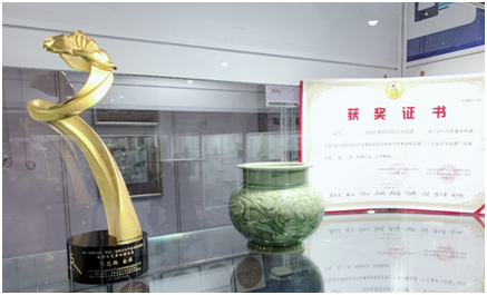 現(xiàn)場,這位陶瓷世家的年青一代為記者介紹了本次冬季文博會中帶來的象征耀瓷的不同時期,不同風(fēng)格的多種器件,包括耀瓷刻花蓮荷紋佛經(jīng)缽、紅底玉縷耀瓷刻花飛龍寶塔尊、耀瓷刻花牡丹紋方肩梅瓶等陜西耀州窯代表性作品,也各具不同藝術(shù)風(fēng)格與特色。