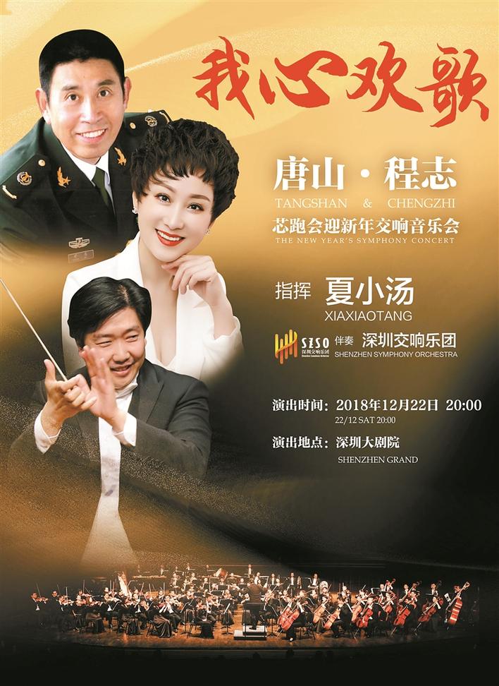 深圳晚報2018年12月13日訊 12月22日,“我心歡歌”唐山·程志音樂會將唱響深圳大劇院。本場音樂會由著名指揮家夏小湯執(zhí)棒,深圳交響樂團演奏。當晚,深圳本土歌唱家唐山和國內(nèi)著名男高音程志將為觀眾獻上多首中外經(jīng)典名曲和個人保留曲目。