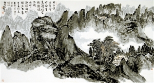 王和平不僅能書寫2尺的大字,還能寫篆書、隸書、行書、草書、楷書,他尤其擅長以指書寫長線條幅,還能書寫小到1寸左右的楷書、行書、草書等各種書體。“從他的《黃山系列》,我看到了一個堅強(qiáng)的古典腳步,追尋在范寬的《谿山行旅途》中,沐李唐的《萬壑松風(fēng)圖》,聽馬遠(yuǎn)的《踏歌圖》……一個精美絕倫的藝術(shù)時代遠(yuǎn)逝而去,念天地之悠悠,獨愴然而涕下。留幽幽懷古者,追憶圣賢高士清歌古琴于卷軸中的絕美風(fēng)騷。王和平和我都是這個幽幽懷古者,追求高貴古典精神的尋賢之人?!边@是評論家豐川在他的《心有千像,十指墨弦》一文中評價王和平的指書所述。