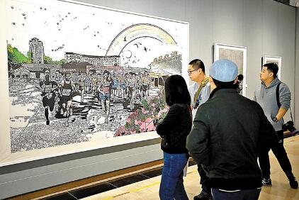 首屆“閃亮龍華”美術(shù)書(shū)法攝影展吸引眾多文學(xué)藝術(shù)愛(ài)好者前往參觀。