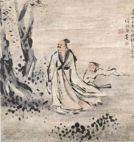 指畫以筆畫作為基礎(chǔ),先要將筆畫學(xué)好以后,才能進(jìn)一步學(xué)畫指頭畫。高其佩早年打下了以筆作畫的基礎(chǔ),觸類旁通,發(fā)展到專門以指作畫,得心應(yīng)手揮灑自如,創(chuàng)作指畫均信手一揮而就,有“頃刻數(shù)十幅”之說,留下的題畫詩屏、詩軸、斗方、詩卷等書法墨跡不多,指畫作品卻為數(shù)眾多,被多家博物館收藏。如收藏于武漢博物館的高其佩指畫作品《人物指畫圖》軸,為高其佩指畫代表作之一。此畫線條生動流暢,布局空靈合理,設(shè)色淡雅清麗。人物形態(tài)逼真,面部用尖指甲細(xì)勾,簡練傳神,衣紋指頭指甲并用,頓挫自如。畫面上,秋風(fēng)颯爽,落葉繽紛,一老一少逆風(fēng)而行走在路上,小童有不勝風(fēng)力、趔趄前行之感。只見衣帶飄拂,發(fā)絲飛揚(yáng),天色暗淡,樹木隨風(fēng)搖曳,運(yùn)筆轉(zhuǎn)折頓挫間自然無痕,一幅秋風(fēng)掃落葉的情景躍然紙上。