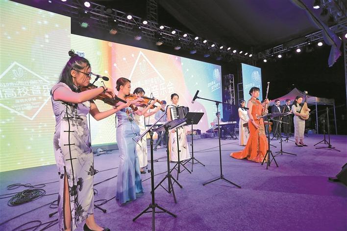 ▲深圳大學(xué)城藝術(shù)團(tuán)表演原創(chuàng)器樂(lè)合奏《驚蟄》。