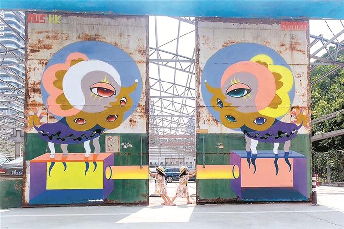 在城市公共空間中,涂鴉藝術(shù)不僅是一種重要的人文景觀,同時(shí)還能給人一種視覺享受,使單一的生活變得富有色彩。來自中國香港的全職藝術(shù)家彭怡擅長用涂鴉進(jìn)行故事創(chuàng)作,作品《雙觀》以左右對(duì)稱相望的停車場守護(hù)神的形象感染車主與行人,傳達(dá)平穩(wěn)冷靜的力量。同樣來自中國香港的涂鴉藝術(shù)家曾昭昶,利用文字涂鴉作品的視覺誤差,嘗試突破停車格的物理范圍,將平面轉(zhuǎn)為立體,帶來作品《內(nèi)&外》。