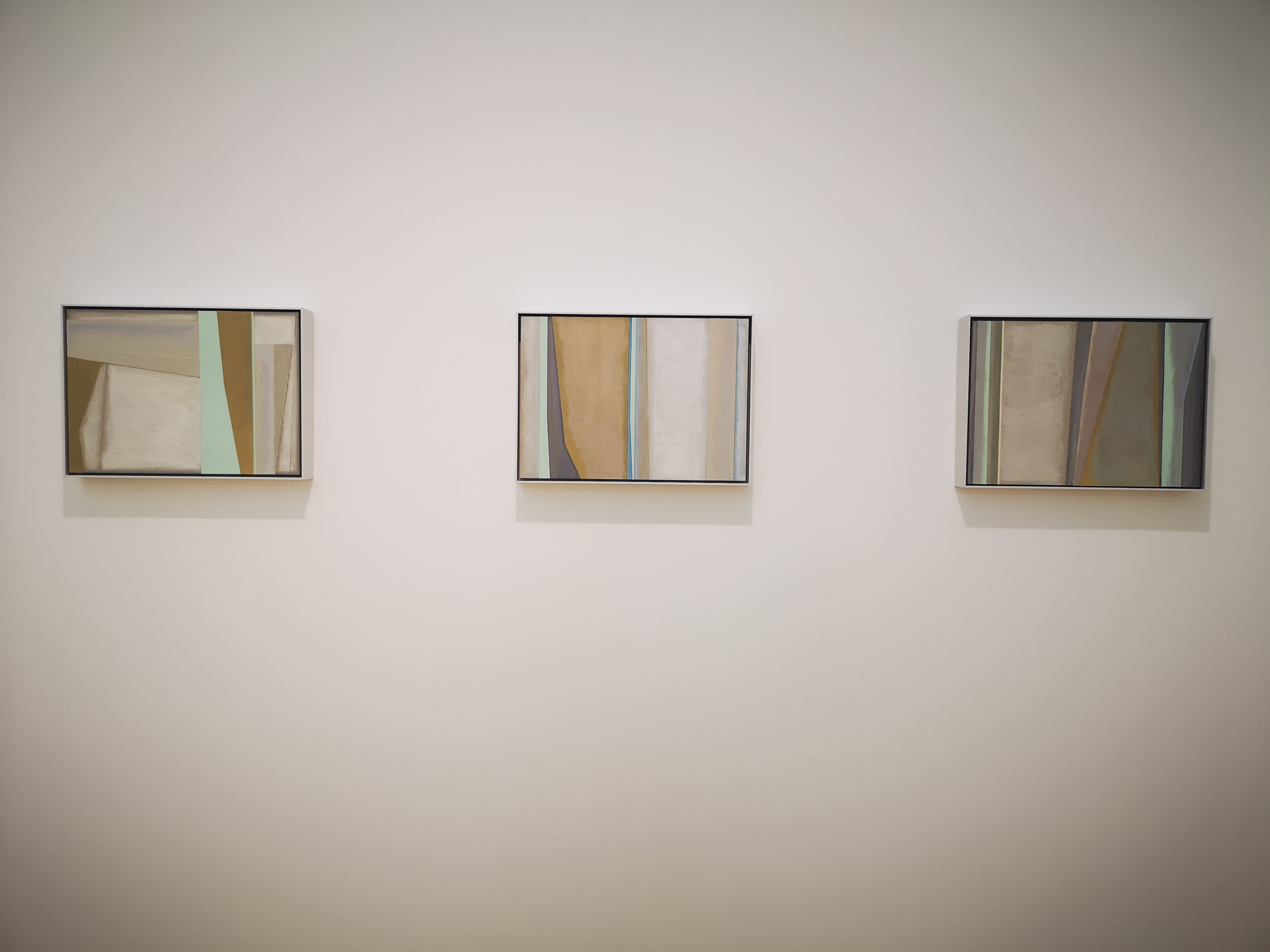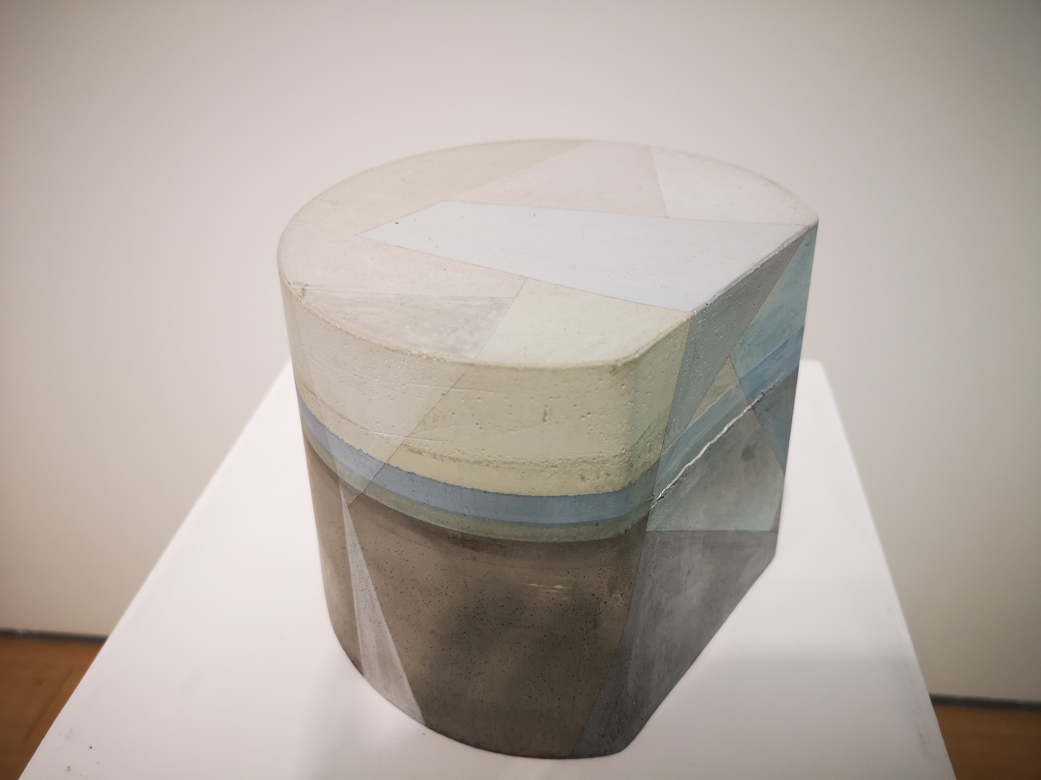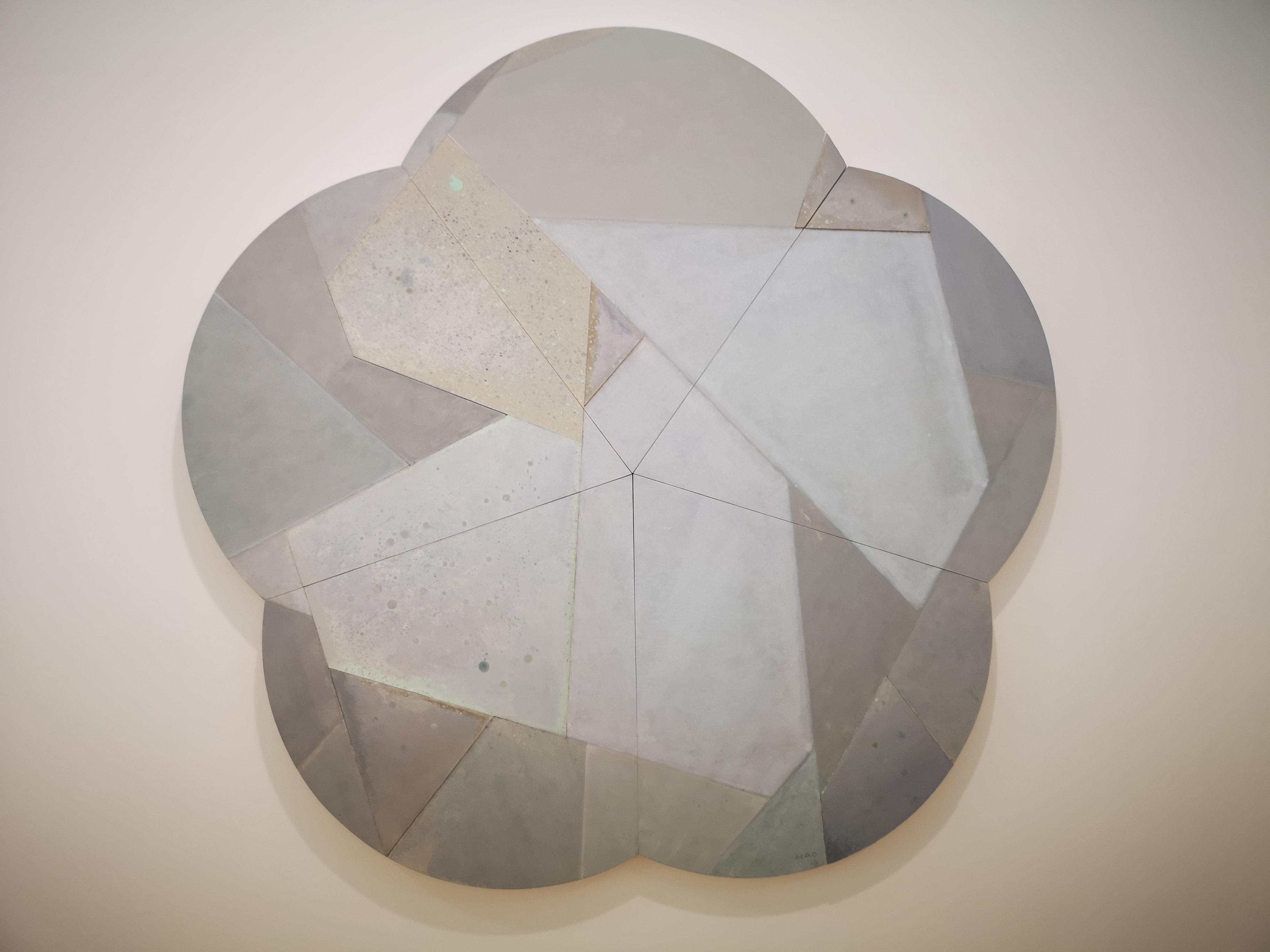自2013年王豪開始以水泥作為個(gè)人創(chuàng)作媒介以來,三個(gè)系列“寂”、“樸”、“遠(yuǎn)”并行展開?!凹拧焙汀皹恪睆?qiáng)調(diào)水泥作品的靜態(tài)特征,不論是單件作品還是多件組合作品,在水泥材料的細(xì)微變化與色塊搭配上,力求傳達(dá)出一種寧靜、樸拙的整體氣息;“樸”系列在形式上更為豐富,不僅嘗試使用斜線、三角形乃至圓形,還探索富于中國古典韻味的形式表達(dá);“遠(yuǎn)”系列的名稱則來源于中國傳統(tǒng)山水繪畫所特有的透視技法“三遠(yuǎn)”概念,這系列作品意圖通過畫面的動態(tài)表現(xiàn)打破二維空間限定,拓展平面繪畫的深度與廣度,從美學(xué)意境上與高遠(yuǎn)、深遠(yuǎn)、平遠(yuǎn)相融合。