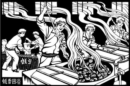 饒凱玉從來沒學(xué)過國畫,也沒接受過正規(guī)的美術(shù)教學(xué)。在集訓(xùn)一個月期間,老師給她一本書,建議她向國畫發(fā)展。她發(fā)現(xiàn)書里有幾幅小剪紙圖很有趣,突然勾起她的創(chuàng)作靈感,為什么不畫農(nóng)村題材呢?她決定創(chuàng)作農(nóng)村“四員”(出納、會計、保管、記工員),“四員”是當(dāng)時典型的社會人物。“我不要畫國畫,要刻紙成畫?!别垊P玉說。當(dāng)時,她先用毛筆在紙上勾勒出形象,修改定稿,后用印寫紙反轉(zhuǎn)復(fù)印在刻紙上,再用刀刻紙成畫。