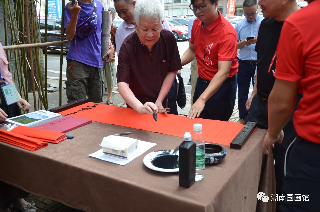 開幕式上,全體參展作者向湖南國畫館捐贈(zèng)了精心創(chuàng)作的書法長卷作品。