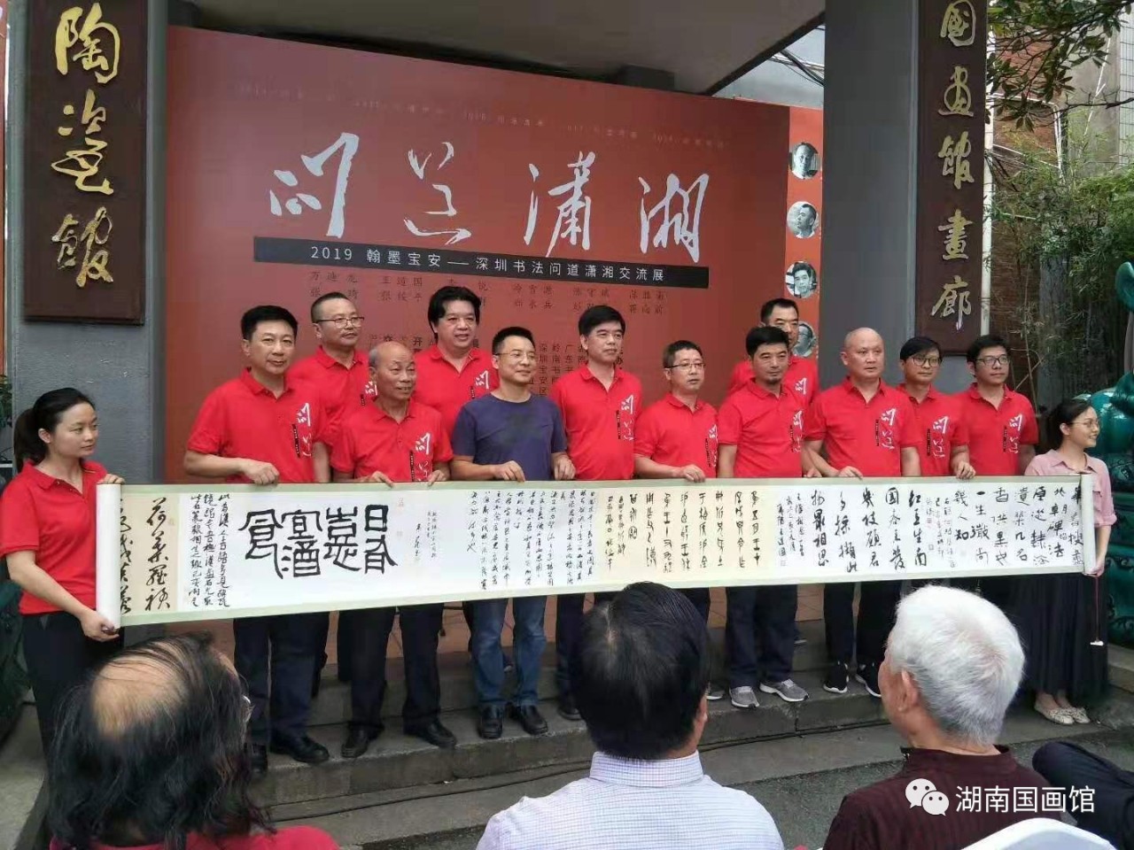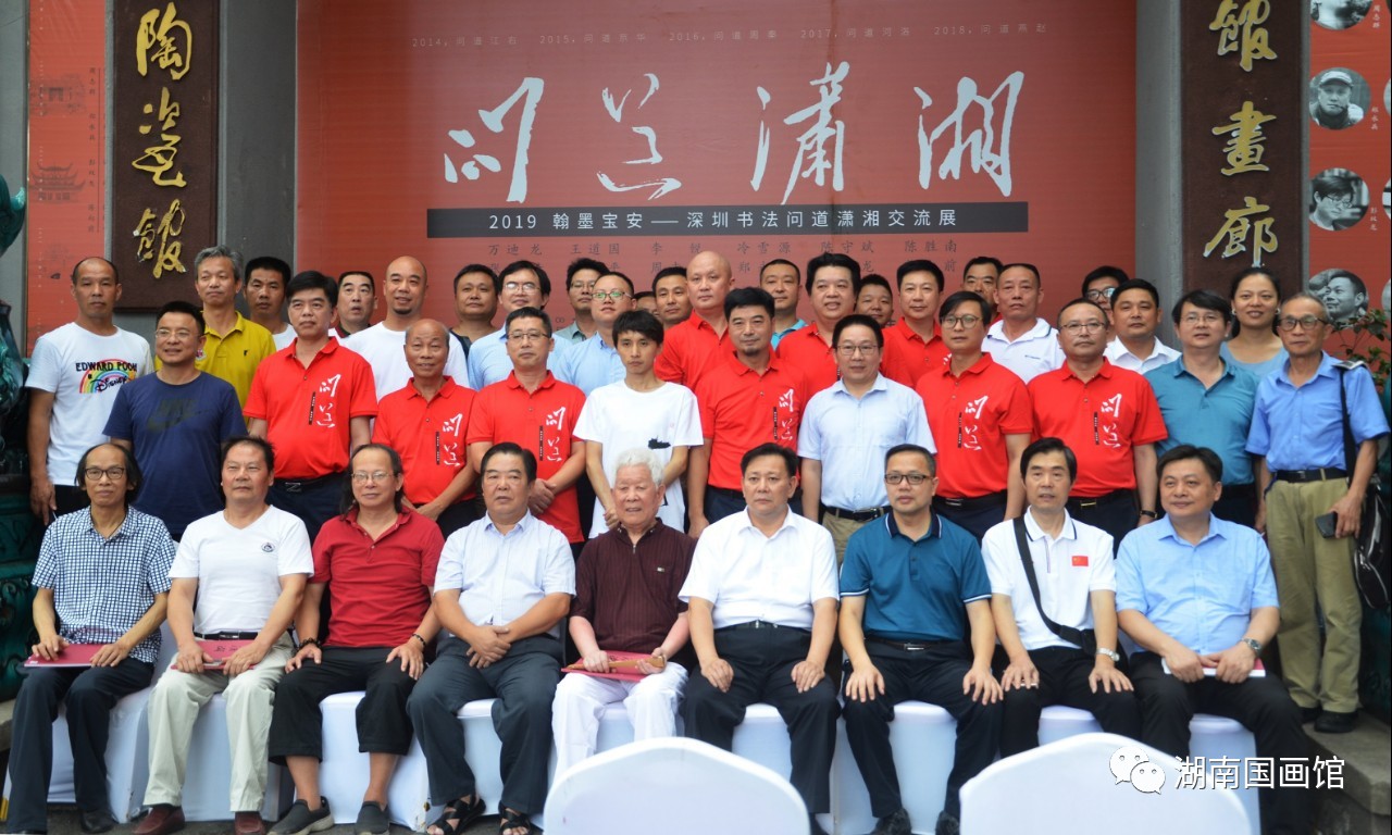 此次“問道瀟湘”是由深圳寶安書社、深圳寶安公共文化服務(wù)中心策劃的品牌活動(dòng),是繼問道江右、問道京華、問道周秦、問道河洛、問道燕趙之后的第六次“問道”活動(dòng),旨在帶上作品,通過展覽和交流,虛心請(qǐng)教,增進(jìn)交流。展覽展出了王道國、萬迪龍、陳勝南、李銳、張琦、張綏平、鄭永兵、冷雪源、周志群、陳守斌、彭雙龍、蔣向前12位深圳書法家的100多幅書法精品,涵蓋篆、隸、楷、行、草、篆刻,氣象正大、功力深厚、風(fēng)格多樣、各有專長,既有切合時(shí)政的政治主題,也有自撰詩詞聯(lián)句和題跋作品;既有湖湘歷史題材佳作,也有深圳本土題材作品;既有丈二巨制,又有平尺小品。展覽的亮點(diǎn)是主展廳的九件丈二巨幅作品,從《不忘初心》到《春天的故事》,從《岳陽樓記》到王冕《墨梅》,筆力沉雄,氣象博大,受到與會(huì)專家和觀眾的好評(píng)!