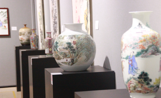 展出廣彩大師劉群興之子劉致遠國畫作品20幅及陶瓷精品60件。展期將持續(xù)到1月15日。