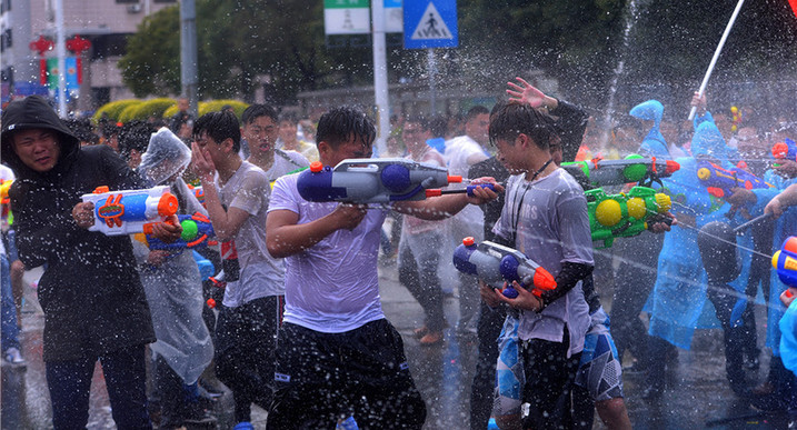 街坊們走上街頭,盡情地互相潑水,祝福的水花飛濺,場面熱鬧壯觀。
