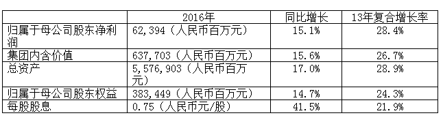 中國(guó)平安保險(xiǎn)(集團(tuán))股份有限公司(以下簡(jiǎn)稱“中國(guó)平安”、“平安”、“集團(tuán)”或“公司”,股票代號(hào):香港證券交易所2318,上海證券交易所601318)公布截至2016年12月31日全年業(yè)績(jī)。
