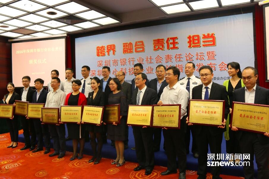 11月6日下午, 深圳市銀行業(yè)社會責(zé)任論壇在深圳市會展中心舉行,論壇上宣布了深圳市銀行業(yè)社會責(zé)任優(yōu)秀單位。在深圳市銀行業(yè)協(xié)會主辦的2016年度深圳市銀行業(yè)社會責(zé)任評比活動中,華夏銀行深圳分行榮獲“最具社會責(zé)任獎”。