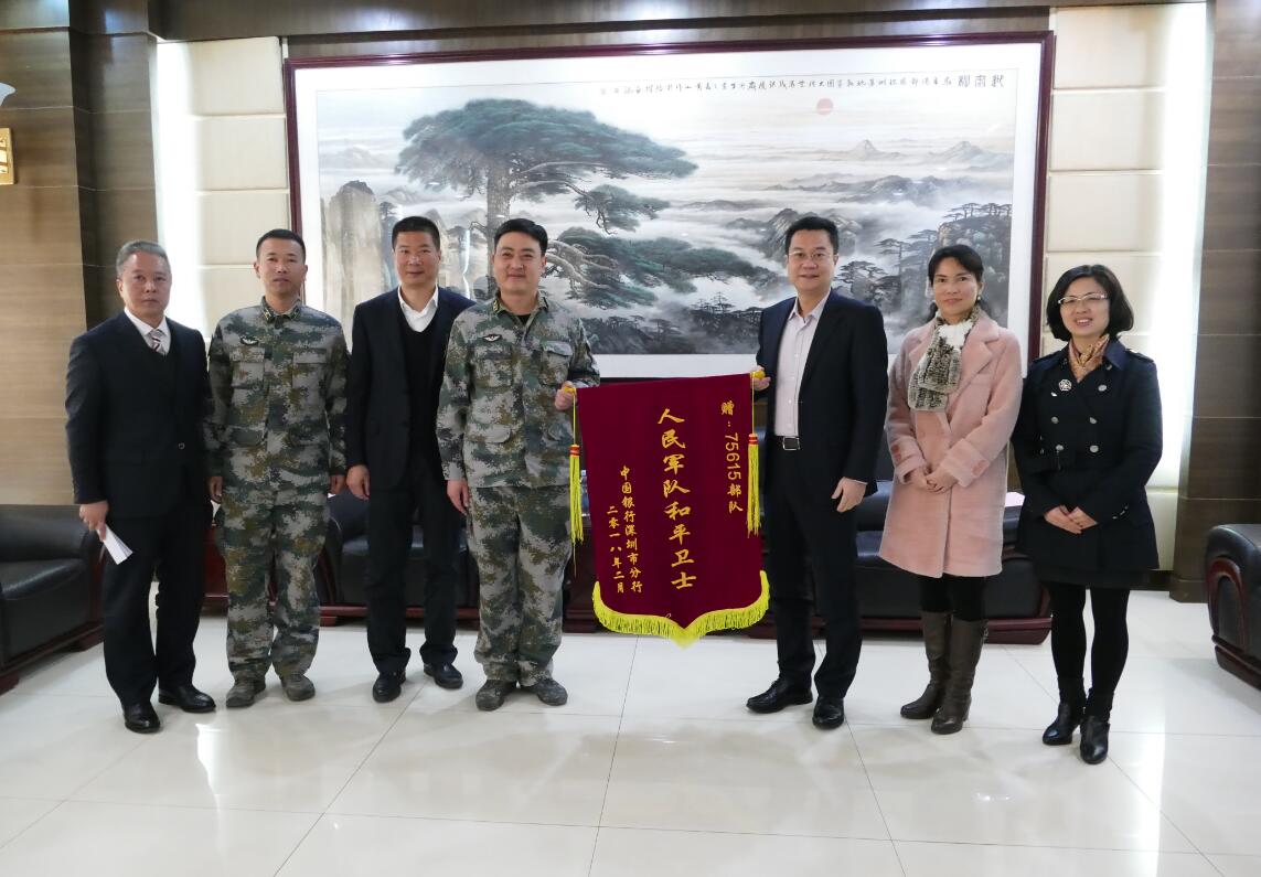 黨的十九大精神和新時代黨的強軍思想,成為全軍新氣象。與新時代精神綱領(lǐng)一脈相承,為發(fā)揮軍政軍民團結(jié)這一政治優(yōu)勢,弘揚軍愛民、民擁軍的光榮傳統(tǒng),同時積極響應(yīng)2018深圳市新春關(guān)愛行動,2月7日上午,深圳中行聯(lián)合深圳市關(guān)愛辦赴駐港部隊深圳教導團開展“承襲擁軍傳統(tǒng)、共敘魚水深情”主題新春慰問暨黨建學習進軍營系列活動,以實際行動踐行愛心優(yōu)良傳統(tǒng),表達對軍人的關(guān)切問候和崇高致意。