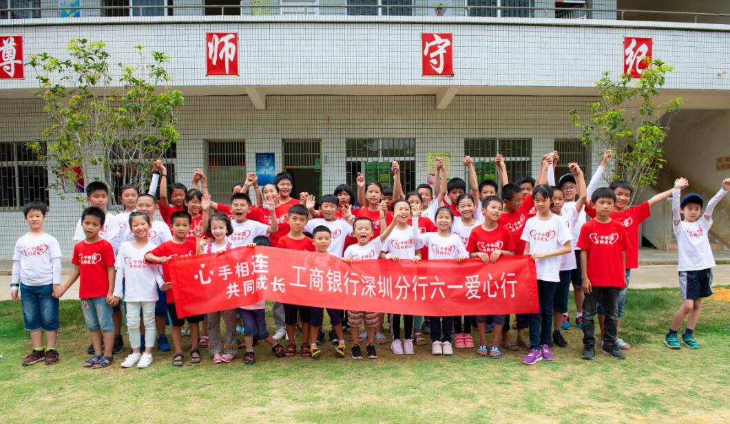 深圳新聞網(wǎng)訊 六一兒童節(jié),紫金縣鳳安鎮(zhèn)的回龍小學迎來一批來自深圳的客人。據(jù)了解,深圳工行分行黨委對扶貧工作高度重視,把教育扶貧作為扶貧開發(fā)的根本大計,按照上級部署,深圳工行組織了赴扶貧定點村回龍村的回龍小學進行助學獻愛心的活動。二十位員工及家屬小朋友在分行工會工作人員的帶領下,經(jīng)過三個多小時的長途跋涉,來到回龍小學,慰問扎根貧困山區(qū)堅持教學的教育工作者,并和回龍小學的小朋友一起歡度六一兒童節(jié),向學校贈送資助物資。