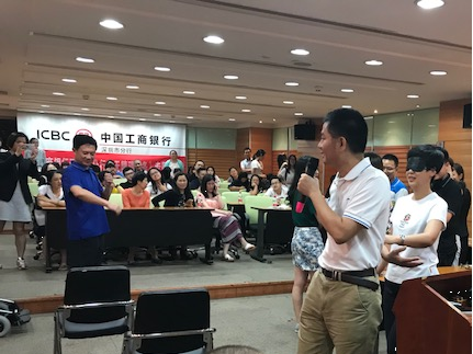 參加培訓(xùn)的工行員工們不但需要學(xué)習(xí)理論知識(shí),還需要進(jìn)行現(xiàn)場模擬操作?!斑@樣有助于我們深入了解殘障人士心理特點(diǎn),有效掌握與殘障人士溝通的技巧,提升我們的無障礙金融服務(wù)能力?!惫ば邢嚓P(guān)負(fù)責(zé)人表示。