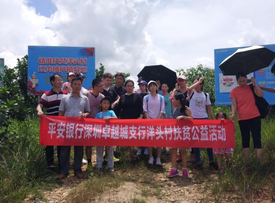 深圳新聞網(wǎng)訊 8月19日上午,為響應(yīng)平安集團(tuán)“三村工程”建設(shè)和平安銀行總、分行黨委關(guān)于扶貧工作的號(hào)召,踐行社會(huì)責(zé)任,平安銀行深圳卓越城支行客戶、員工一行25人前往該行對(duì)口扶貧村紫金縣龍窩鎮(zhèn)洋頭村開展了扶貧公益活動(dòng)。
