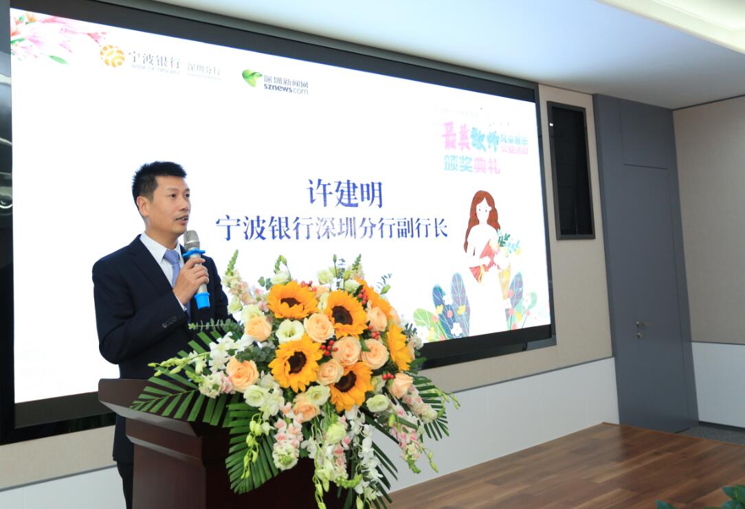 在頒獎儀式現(xiàn)場,寧波銀行深圳分行副行長許建明向全體教師致以節(jié)日的問候,他在致辭中表示:“寧波銀行扎根深圳十余載,在服務廣大深圳市民朋友的過程中,一直以教師群體的‘愛崗敬業(yè)、無私奉獻’精神作為自己的標桿?!蓖瑫r,許建明還表示,這次“鵬城最美教師”活動讓自己感觸良多,寧波銀行在以后工作過程中,會投入更多的精力去推進惠民工程,開展更多的公益項目。