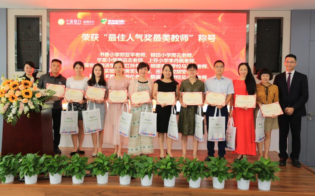 深圳新聞網(wǎng)訊 (記者朱琳江書劍)“國將興,必貴師而重傅?!崩蠋熥鳛椤白饚熤氐馈本竦谋憩F(xiàn)主體,傳道受業(yè)解惑,為社會發(fā)展不斷輸送著優(yōu)質(zhì)人才。2018年9月8日教師節(jié)前夕,由深圳新聞網(wǎng)、寧波銀行深圳分行聯(lián)合主辦的首屆“鵬城最美教師”風采展示公益活動頒獎儀式在寧波銀行深圳分行隆重舉行?;顒幼?018年3月2日啟動以來,吸引了深圳市各中小學校的廣泛關注,經(jīng)過半年時間的尋找與舉薦,共有34位優(yōu)秀教師獲“鵬城最美教師”殊榮。其中有10位教師,通過網(wǎng)絡獻花獲得“最佳人氣獎最美教師”榮譽稱號。