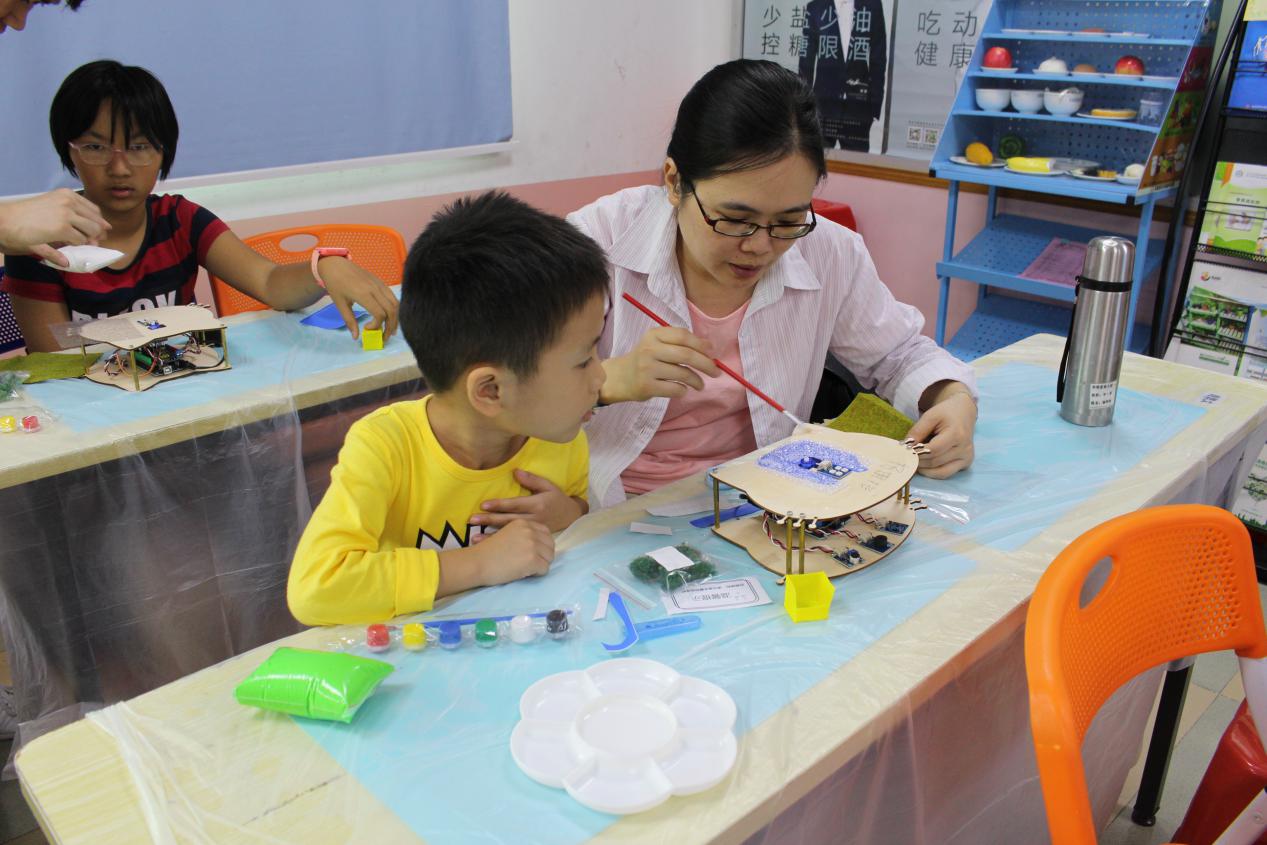“創(chuàng)客智慧社區(qū)”親子創(chuàng)客活動(dòng)項(xiàng)目的通過親子間互動(dòng)互助,共同完成作品深入的體驗(yàn)科技創(chuàng)新的魅力,改善家庭親子關(guān)系,提升父母對(duì)孩子的引導(dǎo),提高家庭教育的質(zhì)量,豐富社區(qū)居民的科技活動(dòng),展現(xiàn)“人與科技”的關(guān)系及未來生活發(fā)展的思考,讓青少年持續(xù)擁有探索創(chuàng)造的能力。
