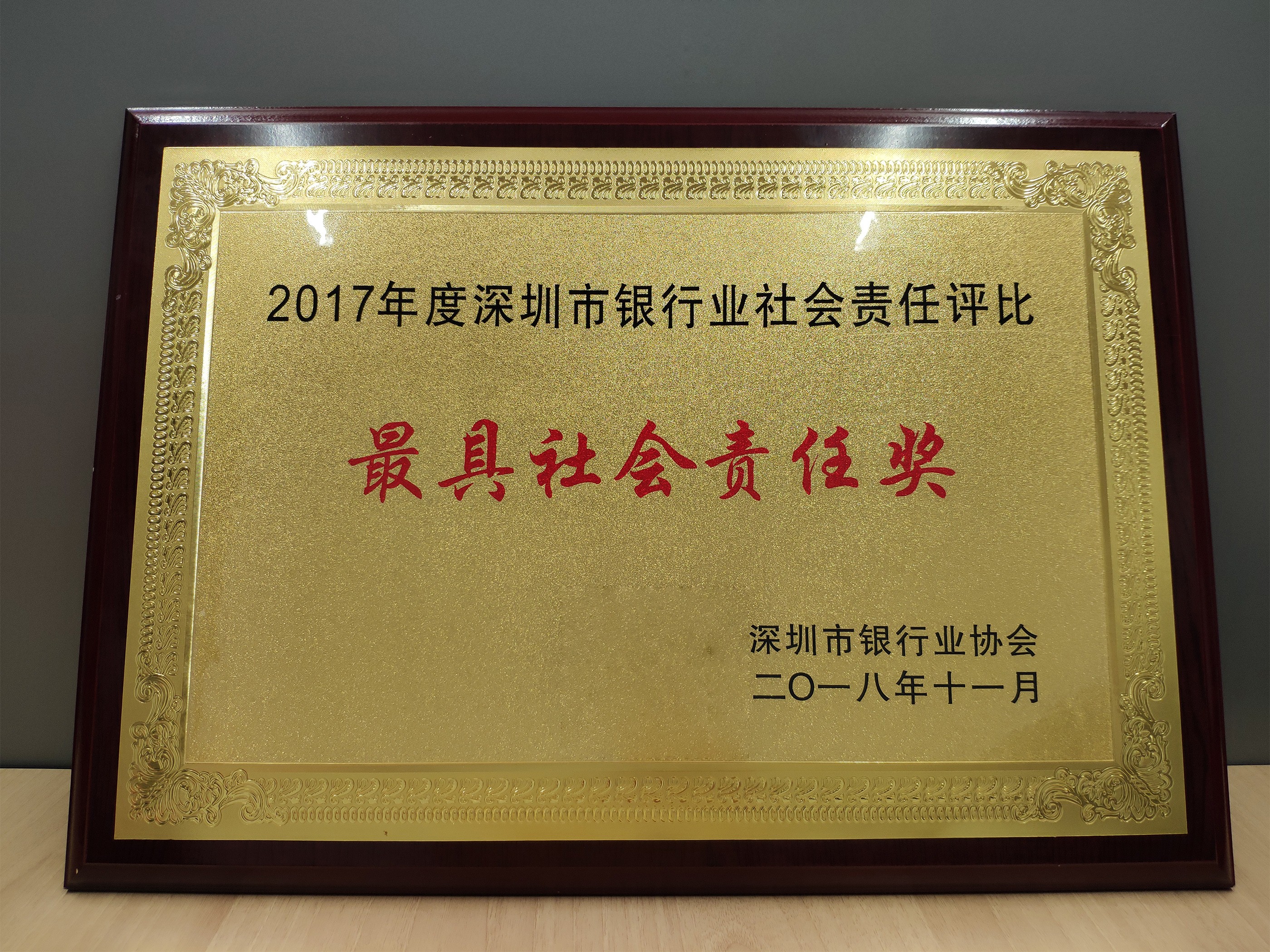 據(jù)了解,2017年度深圳市銀行業(yè)社會(huì)責(zé)任評(píng)比活動(dòng)是由深圳市銀行業(yè)協(xié)會(huì)組織舉辦,邀請(qǐng)業(yè)內(nèi)外專家成立評(píng)審委員會(huì),根據(jù)各參評(píng)單位申報(bào)的相關(guān)材料,通過(guò)對(duì)參選金融機(jī)構(gòu)的材料審查、公益活動(dòng)組織情況等進(jìn)行評(píng)分,評(píng)選出9家在服務(wù)實(shí)體經(jīng)濟(jì)、支持慈善公益、助力綠色金融、回饋社會(huì)公眾等方面工作有著優(yōu)秀表現(xiàn)的“最具社會(huì)責(zé)任”金融機(jī)構(gòu)。