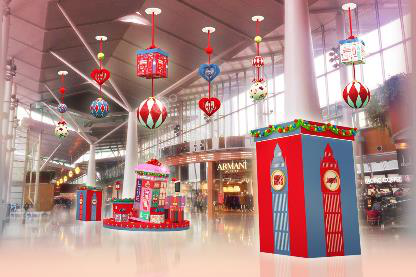 據(jù)介紹,圣誕節(jié)期間東薈城名倉店將以英國國旗上的紅藍白為主調(diào),在場內(nèi)掛滿十多組吊飾,各處均充滿英倫氣息。而2樓天橋位置,更將化身為倫敦街頭,有大本鐘報上八個城市的時間;傾斜的電話亭玩味十足,滿布流行藝術(shù)圖案,而顯示屏也會不斷送上圣誕祝福;還有換上圣誕新裝的英國士兵,整裝與大家互動過圣誕。