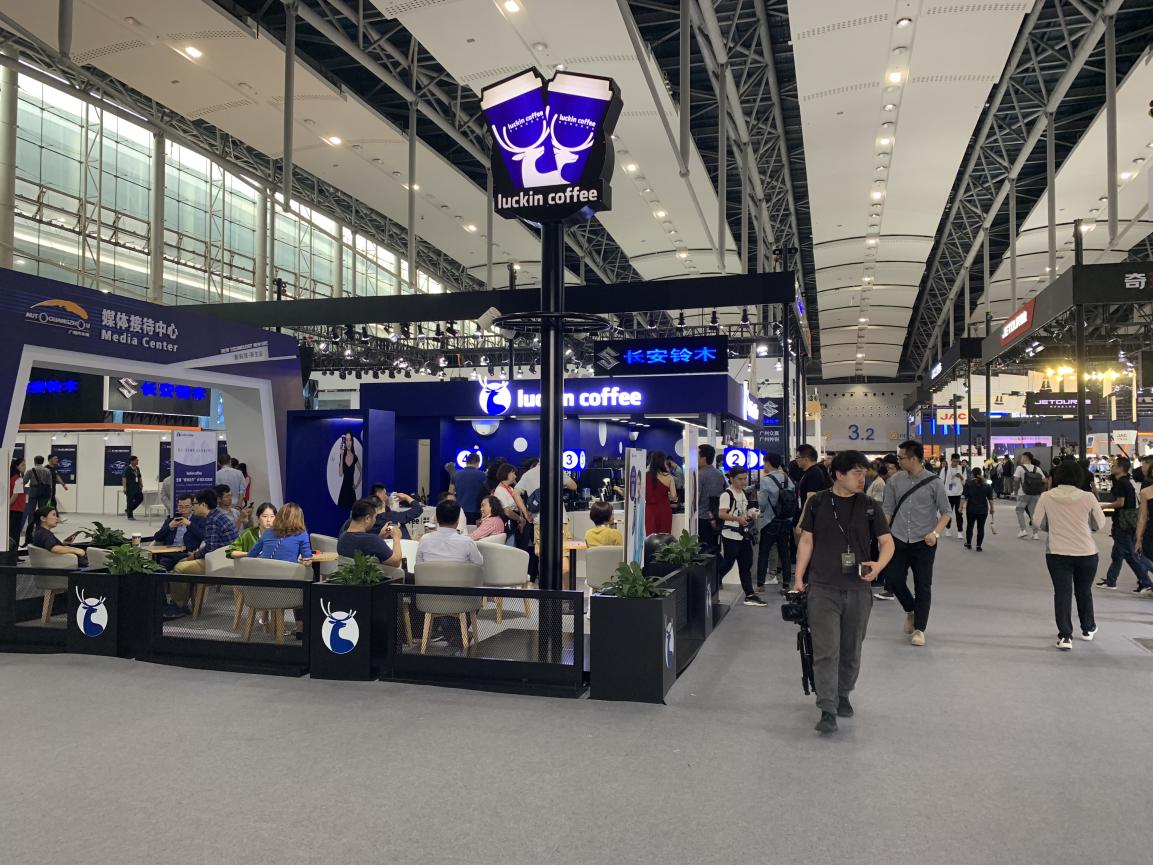 作為2018廣州國際車展組委會特約服務商,瑞幸咖啡(luckin coffee)在本屆車展搭建一個100多平方米的快閃店,向媒體記者、工作人員及現(xiàn)場觀眾提供咖啡與N FC鮮榨果汁等飲品服務。此次入駐廣州車展,也是繼北京車展后“小藍杯“再次來到頂級車展提供專業(yè)咖啡服務。