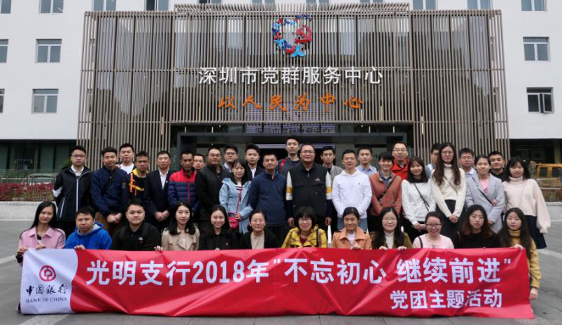 為進(jìn)一步豐富黨團(tuán)組織文化,增強(qiáng)黨員、團(tuán)員干事拼搏、創(chuàng)先爭優(yōu)的意識(shí),提升團(tuán)隊(duì)凝聚力和向心力,12月8日,中國銀行深圳光明支行前往深圳市黨群服務(wù)中心開展“不忘初心繼續(xù)前進(jìn)”黨團(tuán)主題活動(dòng),該行轄內(nèi)中共黨員、預(yù)備黨員、發(fā)展對象、積極分子及共青團(tuán)員共計(jì)50余人參加。
