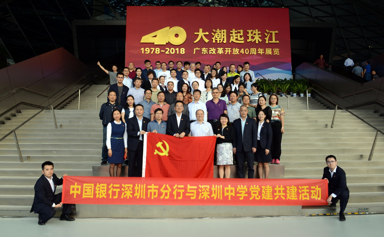 近日,中國銀行深圳東門管轄支行與深圳中學(xué)開展黨建共建活動,雙方黨員代表共同前往深圳改革開放展覽館,參觀了“大潮起珠江——廣東改革開放40周年展覽”。深圳中行蒙震紀(jì)委書記和深圳中學(xué)王東文副校長帶領(lǐng)黨員代表參加了此次活動。