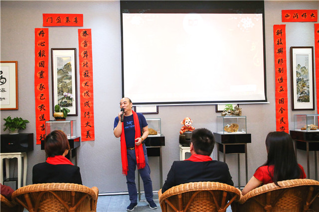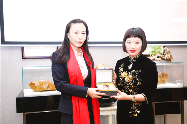 自古書法印章不分家,作品必須蓋印才算完整。本次活動場地提供田黃博物館、希雍天石董事長繆建生為到場嘉賓和校友,受邀分享田黃石科普知識,介紹歷經(jīng)1.8億萬年形成的田黃石種類及特點。 歡聚活動上,田黃博物館特別挑選了一枚“溫、潤、細(xì)、膩、凝、潔” 、印面方正碩大,雙龍雕刻立體,栩栩如生的昌化田黃貫斗雙龍印璽,捐贈給文學(xué)社。 收到如此珍貴的禮物,求是文學(xué)社秘書長樓蓉表示:非常感謝田黃博物館的支持與厚禮,后期將委托機構(gòu)對這塊印石義拍或義賣,所得將以求是文學(xué)社和田黃博物館名義,捐贈給公益項目,會讓這一珍貴的禮物,發(fā)揮更多的社會價值。