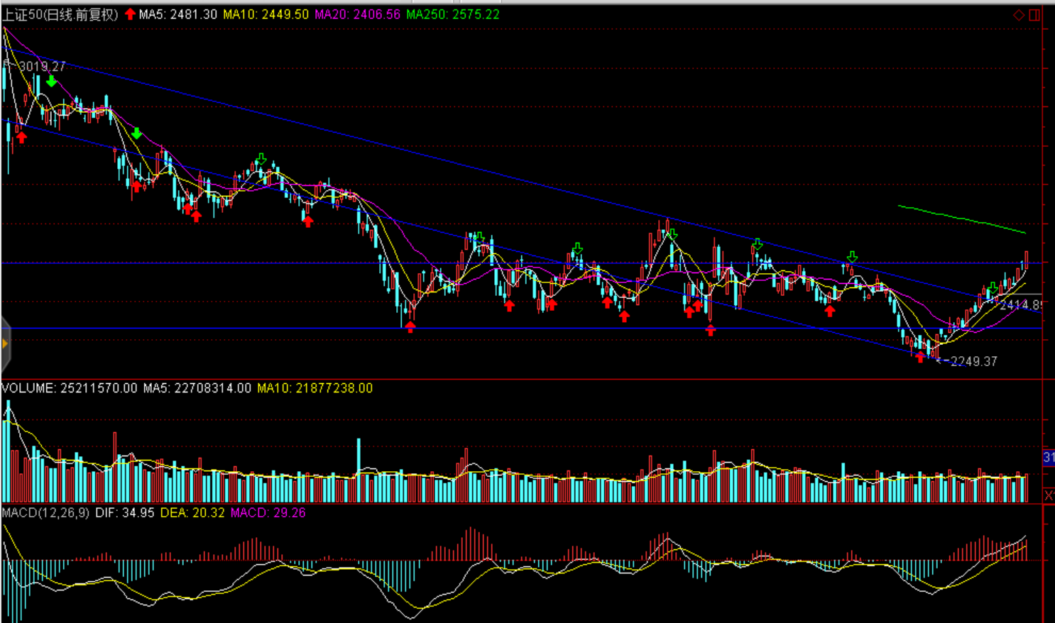 技術(shù)面:短期維持上行趨勢,上證50年線短期目標(biāo)、滬綜指站穩(wěn)半年線后挑戰(zhàn)2700點一線、創(chuàng)業(yè)板短期壓力1350點一線。