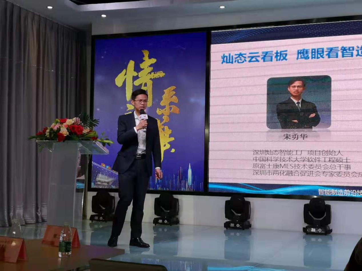 燦態(tài)信息總經(jīng)理宋勇華是原富士康集團(tuán)MES技術(shù)委員會總干事,他以18年富士康智能制造系統(tǒng)實踐經(jīng)驗、100多個工廠信息化智能項目沉淀工作經(jīng)歷介紹了面向中小企業(yè)的智能制造落地方案。其解決方案依據(jù)他原創(chuàng)的三屏看智造理念,即“燦態(tài)鷹眼云看板” SaaS產(chǎn)品,打造符合企業(yè)發(fā)展實際需要和高性價比的智能化平臺,助力中小企業(yè)智能化務(wù)實落地。