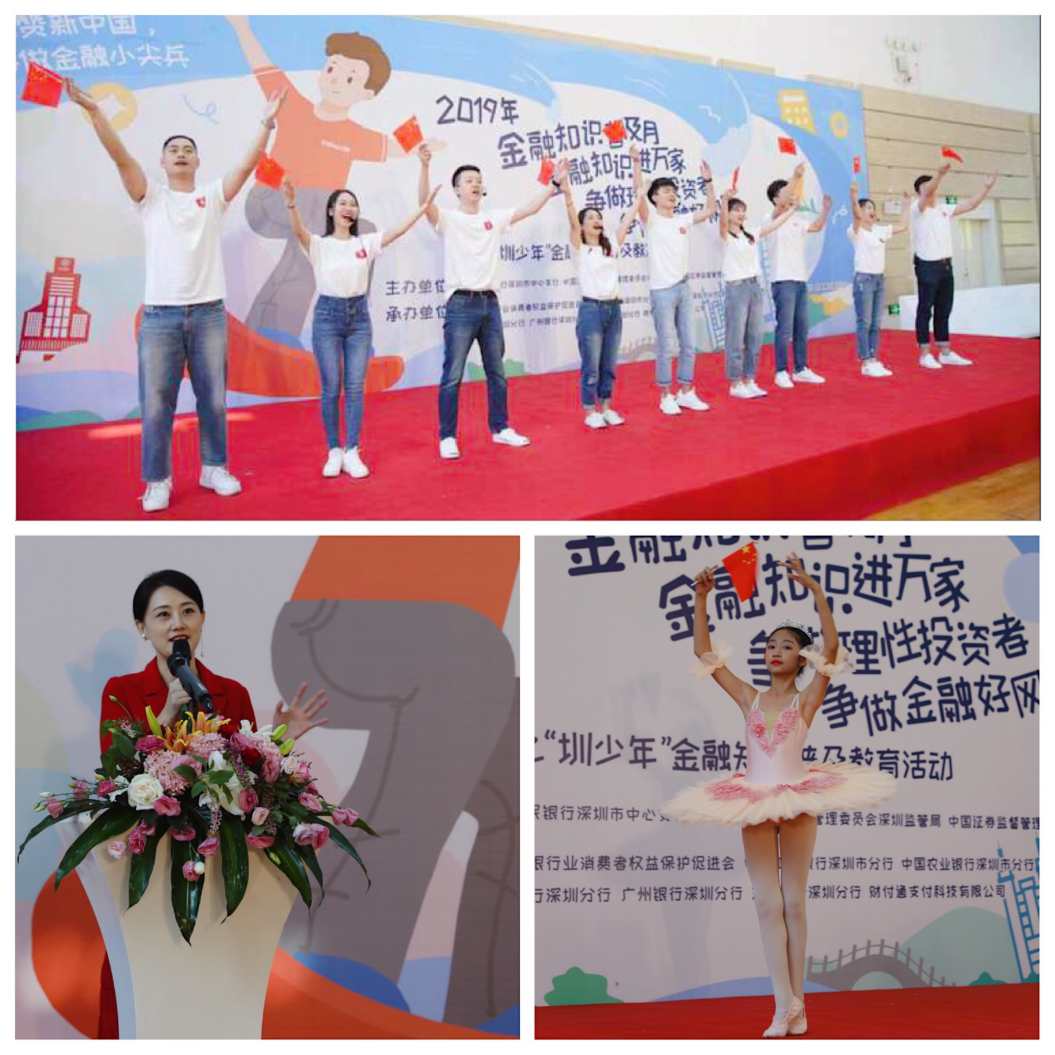 9月22日,由中國人民銀行深圳市中心支行、中國銀行保險監(jiān)督管理委員會深圳監(jiān)管局、中國證券監(jiān)督管理委員會深圳監(jiān)管局聯(lián)合指導(dǎo),招商銀行深圳分行等九家金融機(jī)構(gòu)聯(lián)合舉辦的2019年“圳少年”金融知識普及教育活動在深圳市青少年活動中心圓滿完成。這也是深圳市“金融知識普及月金融知識進(jìn)萬家爭做理性投資者爭做金融好網(wǎng)民”系列活動的拳頭項目,吸引了近120位學(xué)生和家長參加。中國人民銀行金融消費(fèi)權(quán)益保護(hù)局及中國銀行保險監(jiān)督管理委員會消費(fèi)者權(quán)益保護(hù)局相關(guān)領(lǐng)導(dǎo)出席活動并講話。中國人民銀行深圳市中心支行、中國銀行保險監(jiān)督管理委員會深圳監(jiān)管局相關(guān)領(lǐng)導(dǎo)等出席活動。