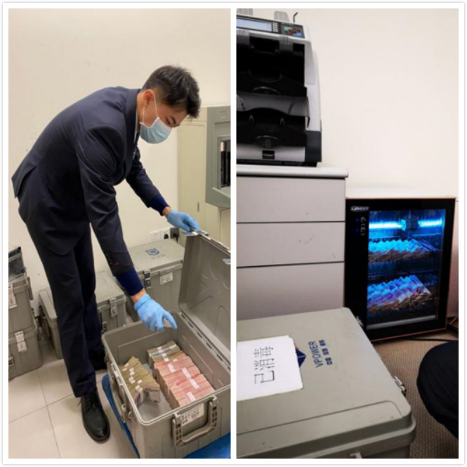 該行加強特殊時期現(xiàn)金管理,為轄內所有現(xiàn)金網(wǎng)點配備專用現(xiàn)金消毒柜,要求回籠現(xiàn)金必須消毒處理,經(jīng)過14天的“隔離”方可對外支付,目前投放的錢盡量以原封新券為主。同時指派專人監(jiān)測自助設備運行情況,做好外包服務疫情防控的指導和協(xié)調。