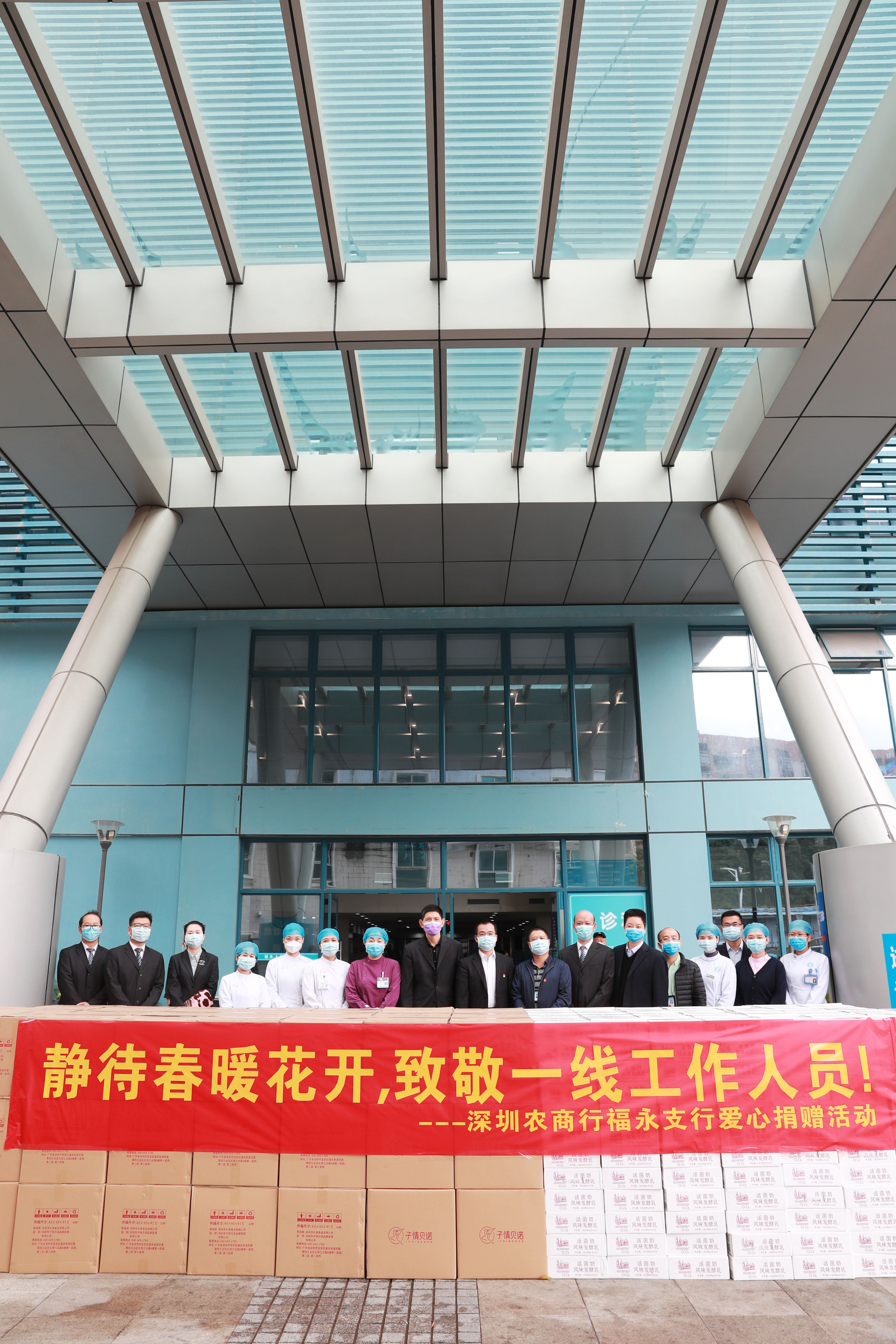 福永人民醫(yī)院堅(jiān)守在福永街道抗疫前線,守護(hù)著福永和福海近百萬人的健康,為感謝福永人民醫(yī)院醫(yī)務(wù)人員加班加點(diǎn)忘我奮戰(zhàn),深圳農(nóng)商行福永支行選購(gòu)了1500盒糕點(diǎn)和1500箱酸奶送到福永人民醫(yī)院,表達(dá)他們對(duì)醫(yī)務(wù)工作者“舍小家、為大家”的崇高敬意。