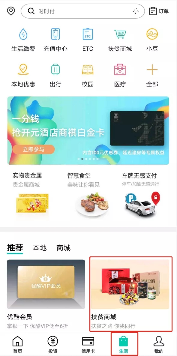 打開農行掌銀APP,點擊“生活”-“扶貧商城”