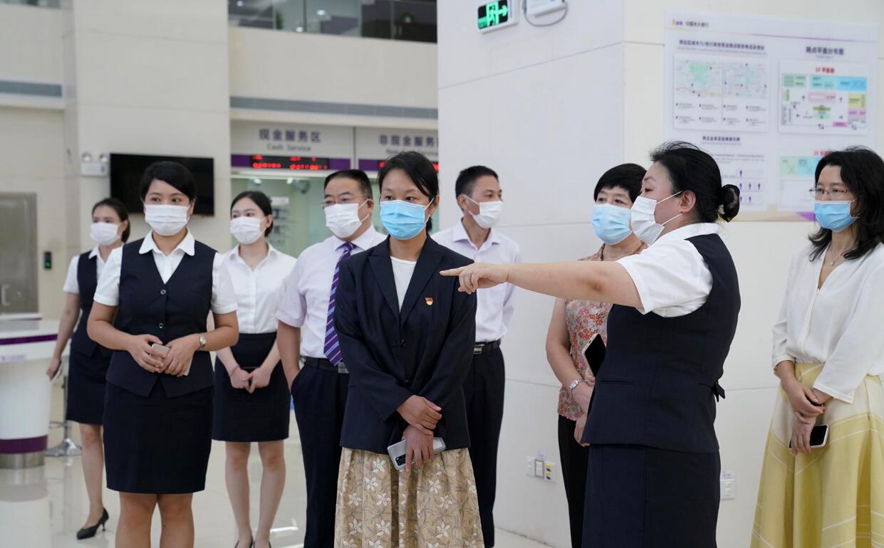 分行黨委高度重視此次調研活動,紀委書記方眾部署安排,在分行渠道管理部/消費者權益保護部和支行負責人陪同下,朱會長一行參觀了高新技術園支行營業(yè)部,對網點的服務環(huán)境、服務功能布局、大堂管理、柜面服務與效率、消費者權益保護與責任、服務文化建設等情況進行了現場調研,并與相關負責人進行了深入交流。胡曉莉主任現場體驗了光大銀行智能柜臺的服務后,對于其便捷性、智能性予以肯定。