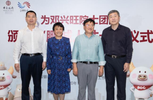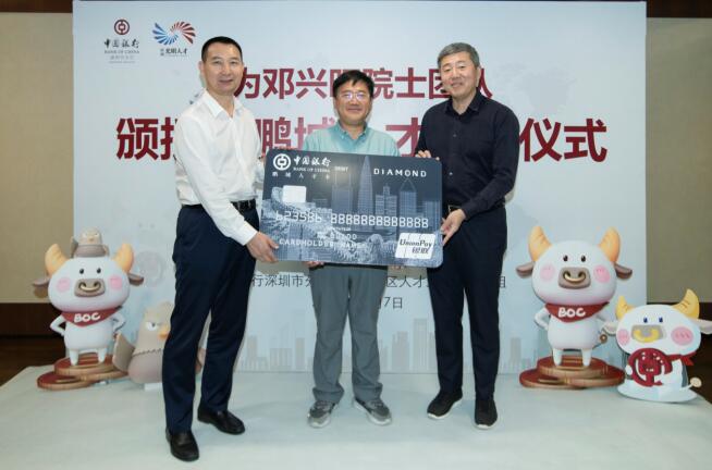 深圳新聞網(wǎng)·見圳客戶端2020年11月8日訊 昨日,深圳市光明區(qū)委常委、組織部部長繩萬青,中國銀行深圳市分行副行長韓竹代表深圳市光明區(qū)人才辦和中國銀行深圳市分行,為生物學(xué)家、美國國家科學(xué)院院士鄧興旺及部分團隊成員頒發(fā)了“中銀鵬城人才卡”鉆石卡,這是全市范圍內(nèi)首張向在深院士發(fā)放的“中銀鵬城人才卡”,標(biāo)志著這張由光明區(qū)人才辦和深圳中行共同策劃推出的人才卡實現(xiàn)了市級認(rèn)定的各層級人才全覆蓋。鄧興旺院士是深圳市杰出人才獲得者、深圳市作物分子設(shè)計育種研究院院長、深圳興旺生物種業(yè)有限公司董事長,他帶領(lǐng)團隊2010年到深圳創(chuàng)業(yè),多年來在水稻領(lǐng)域取得兩項重大技術(shù)突破,其中“潔田模式”大規(guī)模市場示范面積達到50萬畝,有效加快了中國農(nóng)業(yè)的輕簡化、現(xiàn)代化步伐。