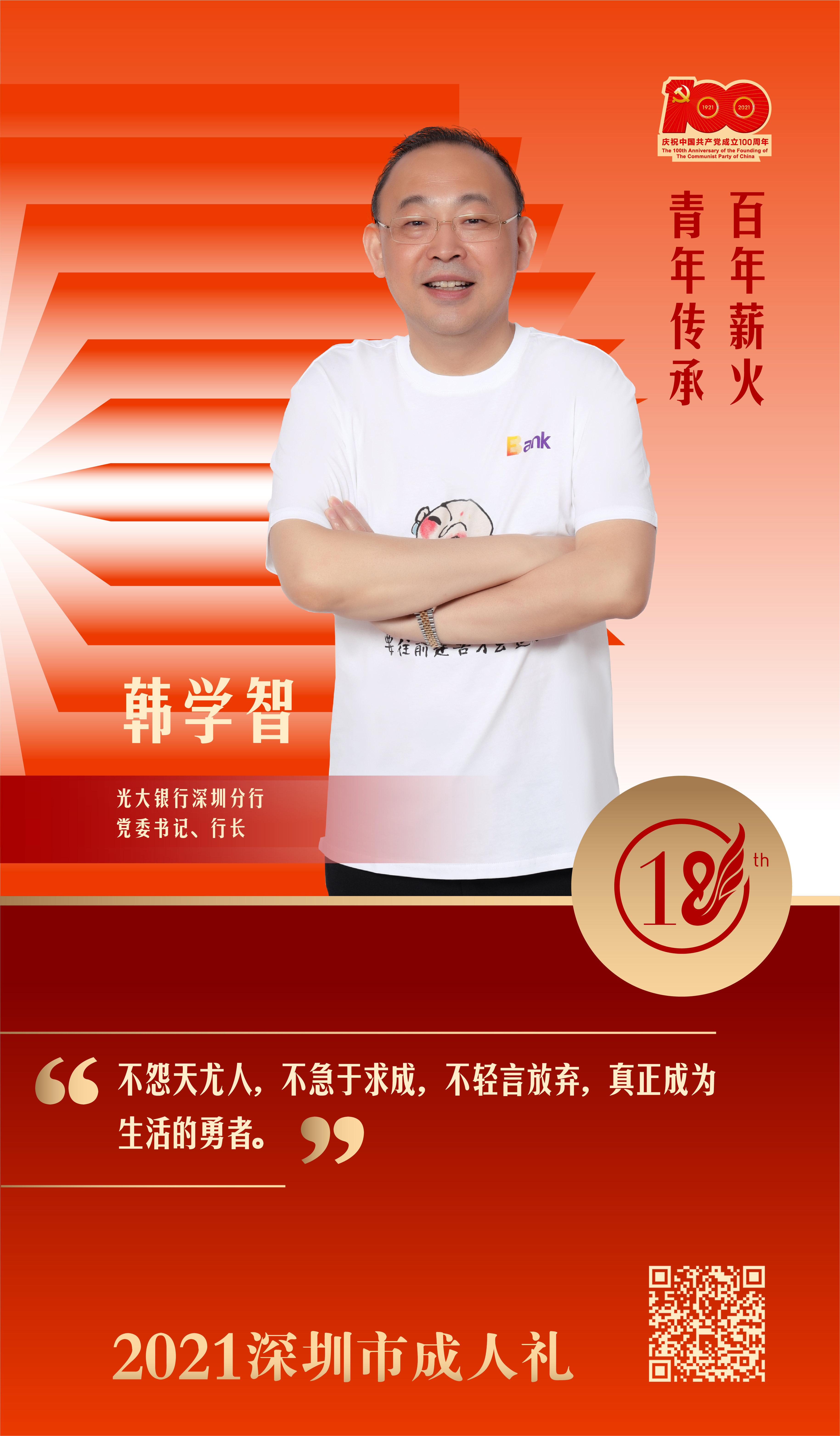 深圳新聞網(wǎng)·見圳客戶端2021年5月10日訊“以‘三勤四慎’提升青年生活幸福感,希望年輕人能勤于思考,善于思考,學(xué)會(huì)從思考中發(fā)現(xiàn)問題,解決問題,這樣才能取得更快的進(jìn)步。”在5月7日拉開序幕的“百年薪火,青年傳承”2021深圳市成人禮系列活動(dòng)中,光大銀行深圳分行黨委書記、行長韓學(xué)智作為青春代表,通過網(wǎng)絡(luò)渠道,為青年們送上飽含激情和期待的寄語“明信片”。