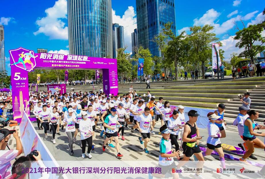 深圳新聞網(wǎng)?見圳客戶端2021年5月15日訊 今日,由中國光大銀行深圳分行主辦的“陽光消保,深圳起跑”2021中國光大銀行深圳分行陽光消保健康跑在深圳人才公園歡樂開啟。上千位運(yùn)動(dòng)愛好者用腳步跑贏金融消費(fèi)“套路”,用奔跑的方式共同守護(hù)財(cái)富健康,奔向健康人生。