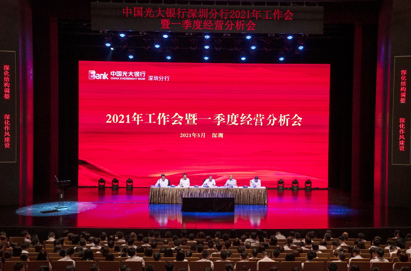 深圳新聞網(wǎng)·見圳客戶端2021年5月16日訊 今日,中國光大銀行深圳分行召開2021年工作會暨一季度經(jīng)營分析會。會上,分行黨委書記、行長韓學智深入傳達貫徹集團、總行一季度工作會議精神,總結(jié)回顧了分行一季度經(jīng)營管理情況,深刻分析了當前分行面臨的困難局面和存在的問題,在此基礎(chǔ)上,提出了分行2021年“深化改革力度深化風險管理深化結(jié)構(gòu)調(diào)整深化作風建設(shè)”的工作方針,部署了全年經(jīng)營管理和黨建重點工作任務(wù)。