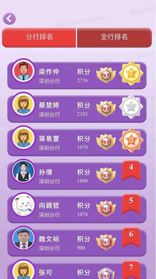 此次活動取得良好效果,有效提高員工消費者權益保護意識與能力。滄海橫流顯砥柱,萬山磅礴看主峰。深圳分行熙龍灣支行梁作仲、海濱支行蔡楚婷、華強支行蔣易萱、寶城支行孫倩、陽光服務(消保)辦公室向穎哲、民塘支行魏文標、寶城支行張可、華強支行蔡靜嫻、寶新支行郭曉冀、民塘支行彭慧妮的最終比賽戰(zhàn)績排名分行前十位置。分行陽光服務(消保)辦公室、零售金融部、民塘支行、南海大道支行、寶新支行、八卦嶺支行、筍崗支行、水貝支行、南灣支行、羅湖支行、布吉支行、福田支行、中心區(qū)支行實現(xiàn)全員參與比賽,表現(xiàn)也十分突出。